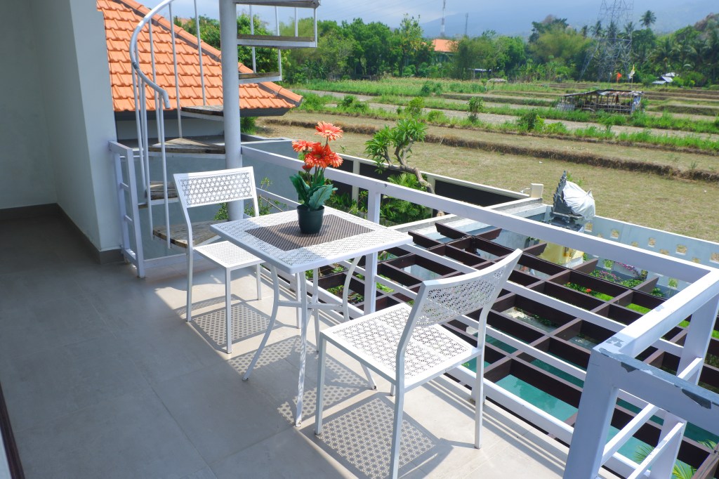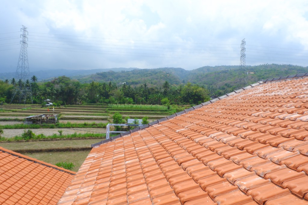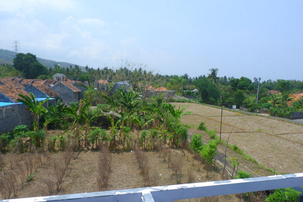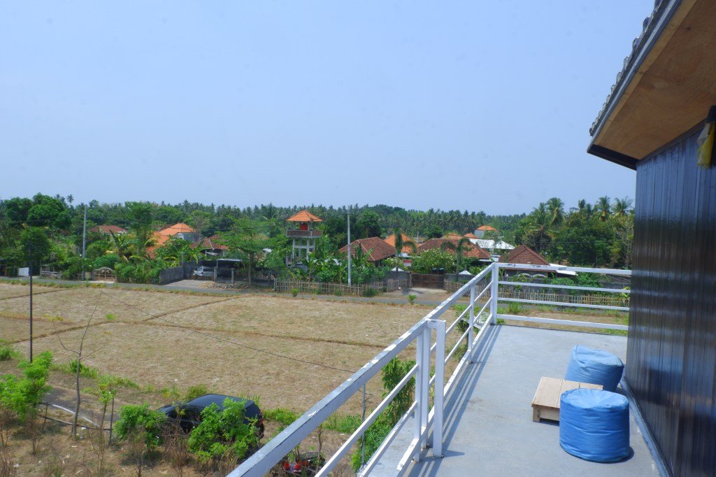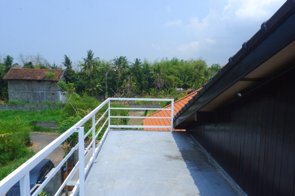 Third floor has a resting area where you can see the sunset, overlooking rice fields and the Java Mountains, with a very nice breeze.