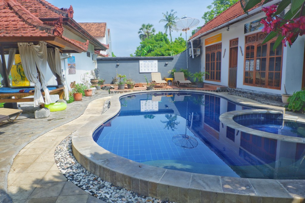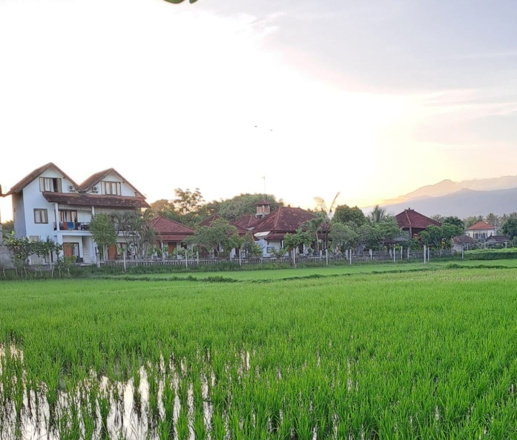 You can choose to live in the main house and rent the rooms out, or rent it out as well. It has a nice kidney shaped pool and a restaurant, a covered parking area and a few bale bengongs. All the rooms have beautiful rice field view.