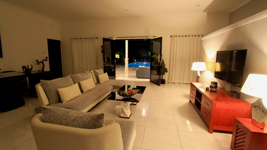 The villa is located in a tropical garden. This spacious villa is built on 1500 M2. There is a big living room and a big outside terras where you can wine and dine.