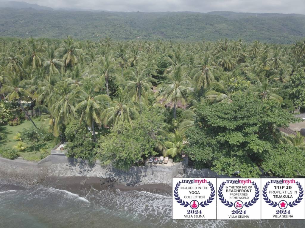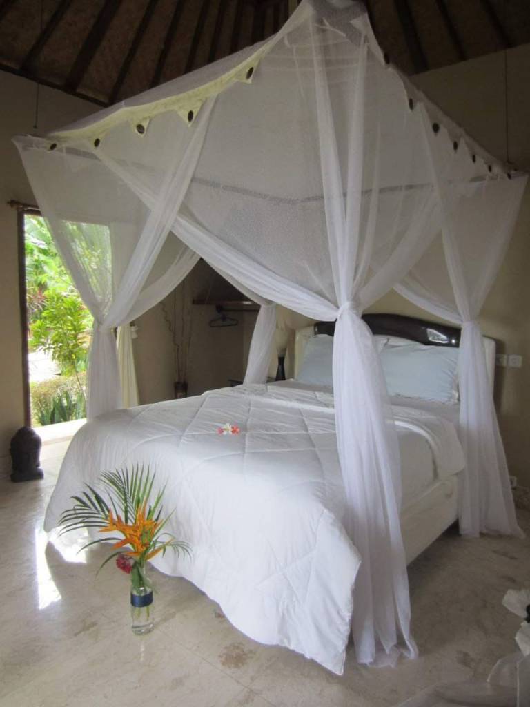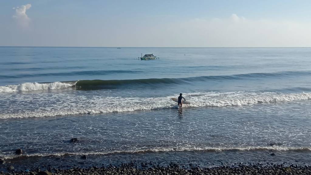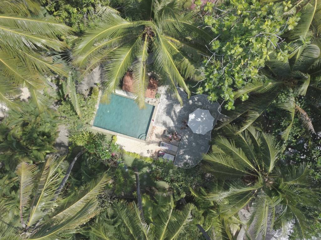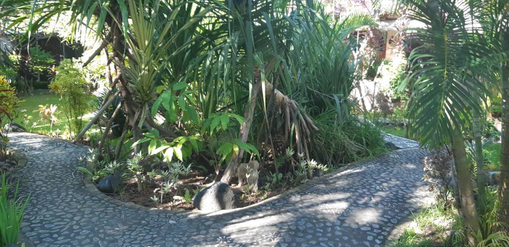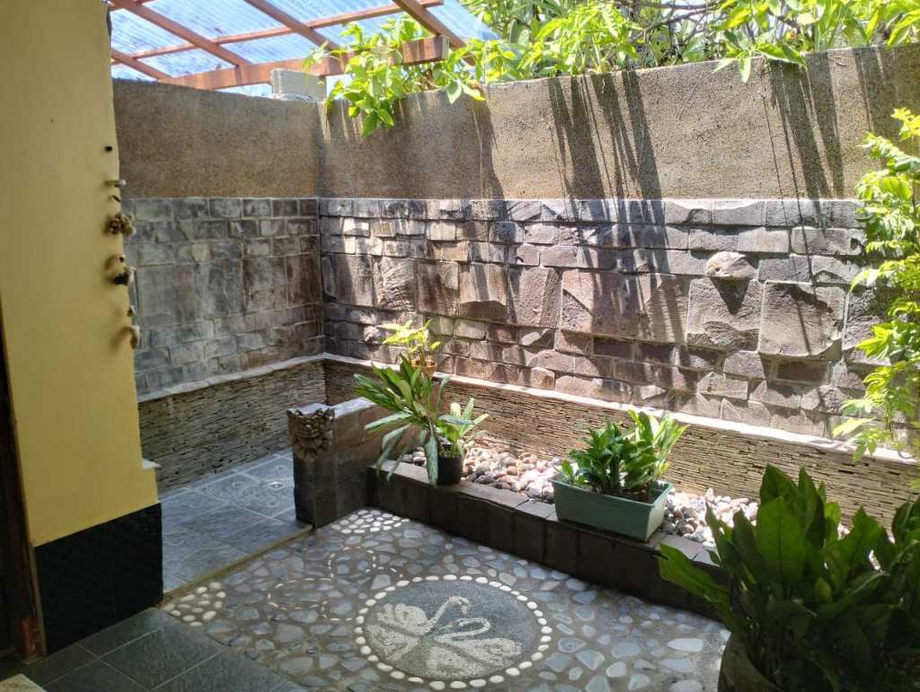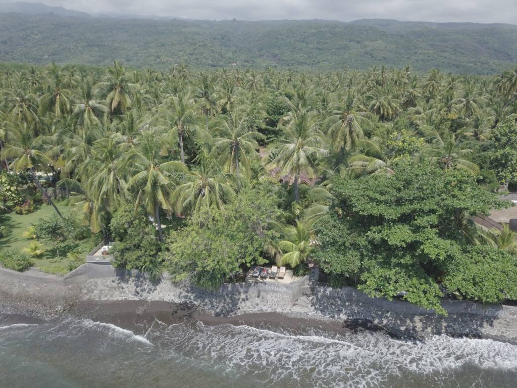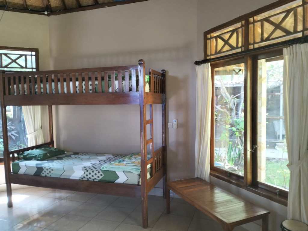 The resort has a lush tropical garden with well maintained walking paths, and several bale bengongs, where you can relax and enjoy the silence and the beauty of the garden. There is a 4×6 meter pool with shower, just before you get to the 60 meter long oceanfront. All along the oceanfront are sitting areas with chairs, barstools, or hammocks where you can enjoy the stunning view and smell the salty ocean.