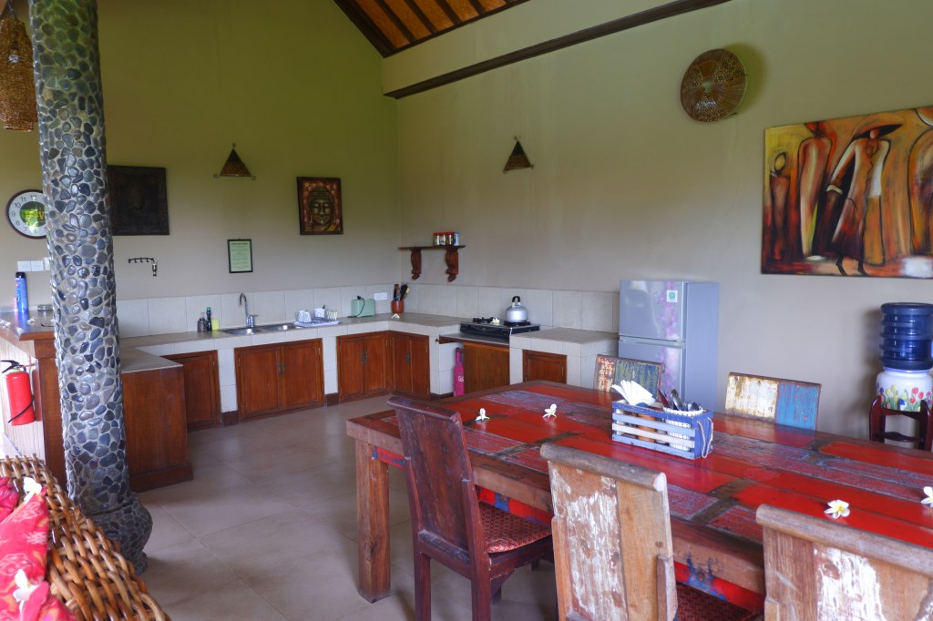 The villa has 3 bedrooms with air con and ensuite bathrooms. It has a large kitchen and spacious open living area where you can enjoy spectacular rice field views, a laundry and an extra toilet.
