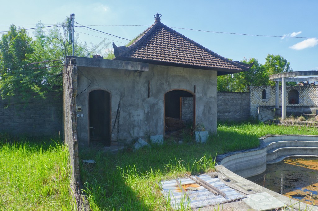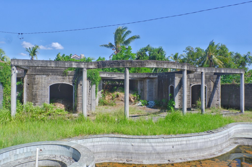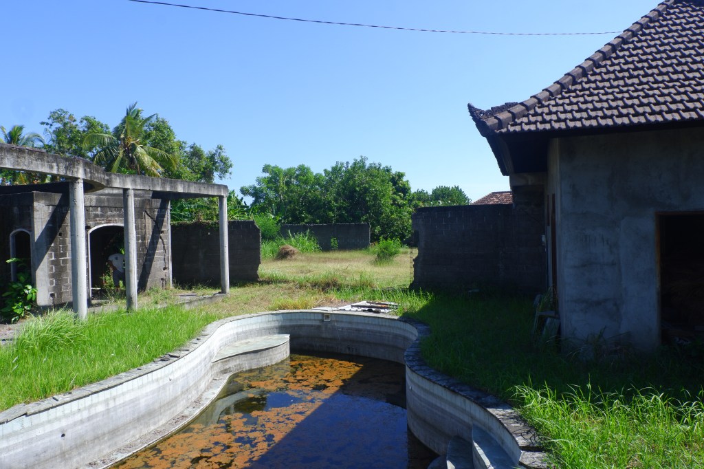 On one of the plots there was some construction done, but that got stopped during covid. It’s a beautiful villa in the rough, with pool and guest house. So your dream villa is half-built.