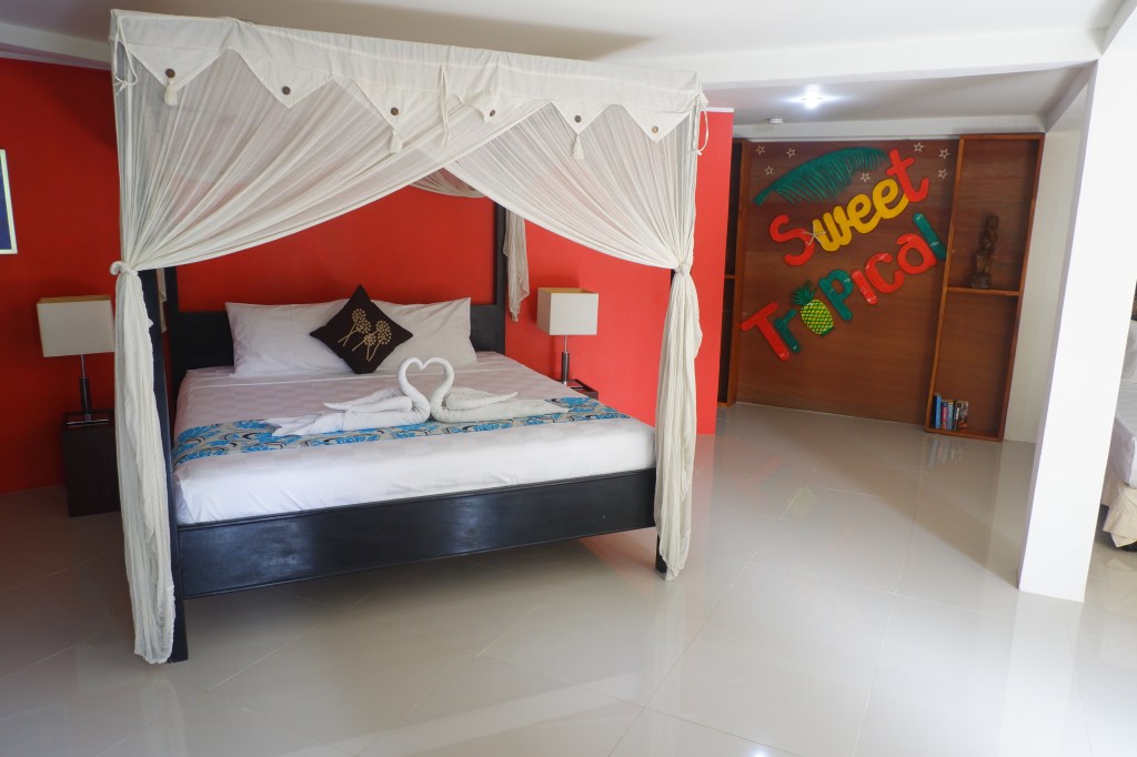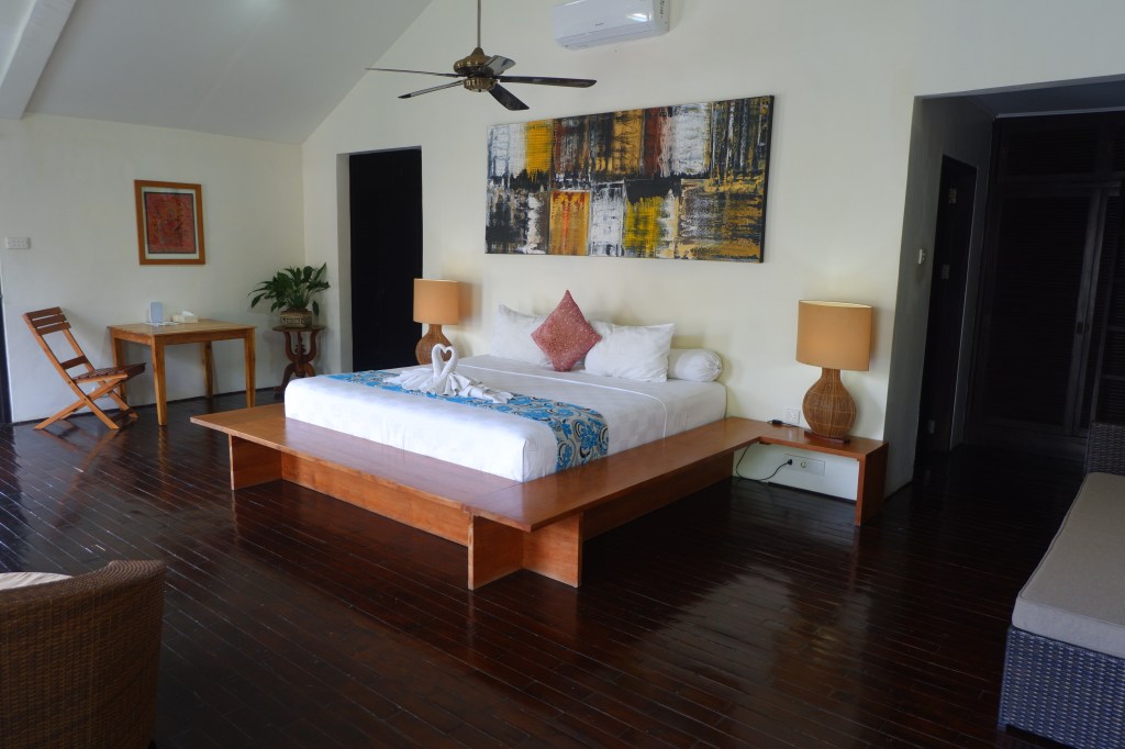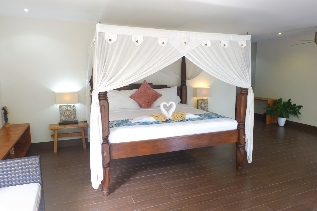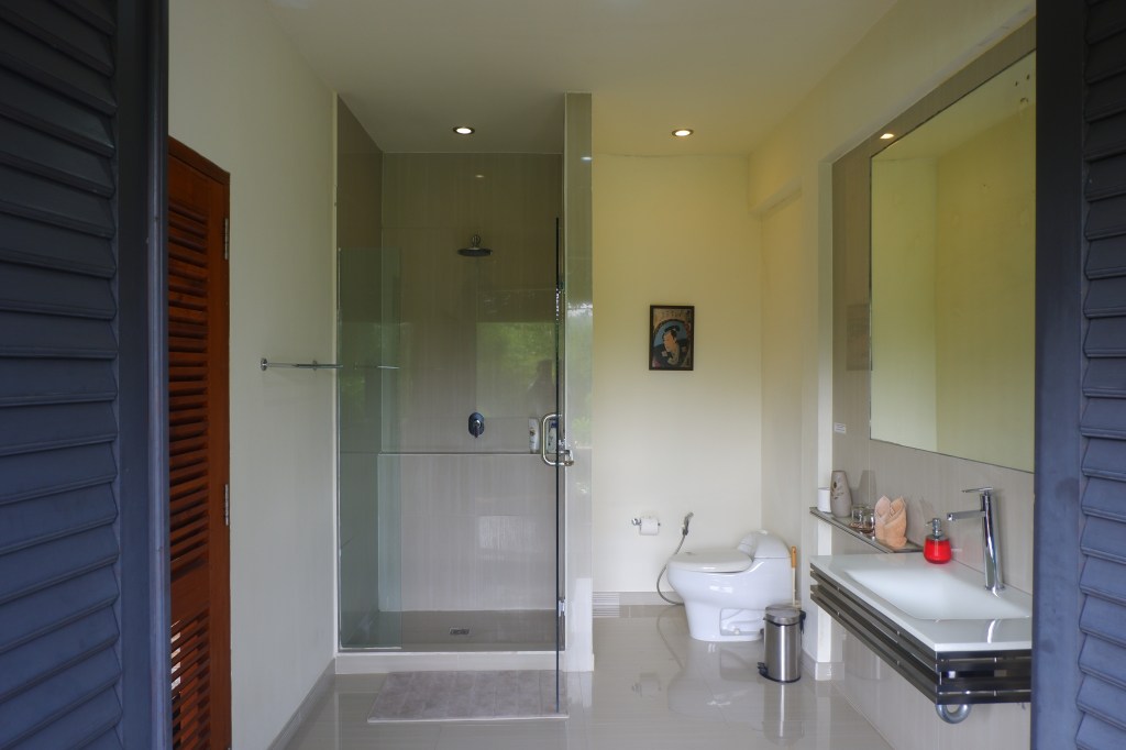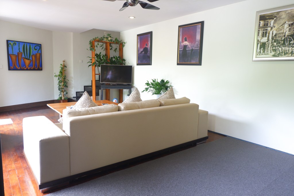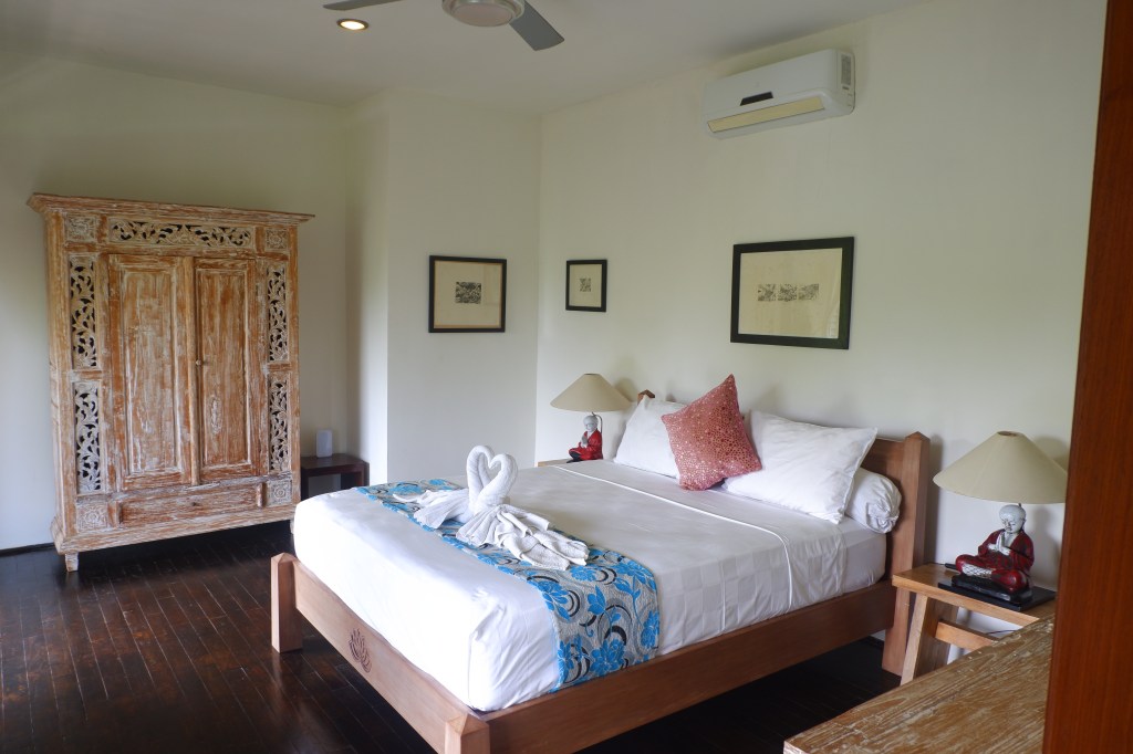 Lovina villa: The main villa has 2 floors. On the top floor are two separate bedrooms with ensuite & large balconies, a lobby with access to the spacious entrance and parking. The bottom floor houses a brand new room (completed May 17) of over 85 sqr/meters with loads of natural light, garden & pool views, balcony & an enormous ensuite bathroom with dual hand basins and a large open shower, toilet, etc. There is a separate walk-in robe with safe, luggage rack nook, desk, 1.5 KW AC, & sitting room area. Also on this ground level is the living room and reading / TV/games room with large couches, flat screen TV, Indihome entertainment channels, Sony PS3 player, etc.