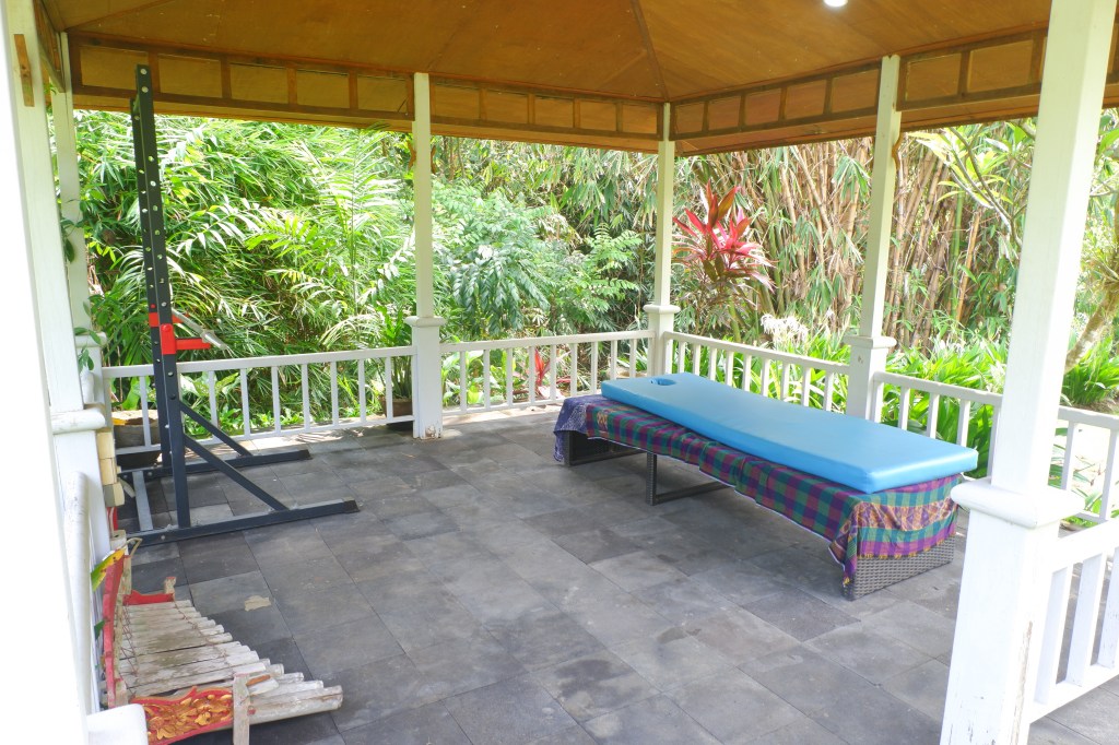 In the beautifully landscaped gardens of the property is a recently renovated Balinese hut, perfect for Yoga or massages or just to sit & read a good book. Complete with ceiling fan, lighting, blinds, & seating.