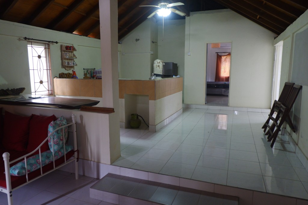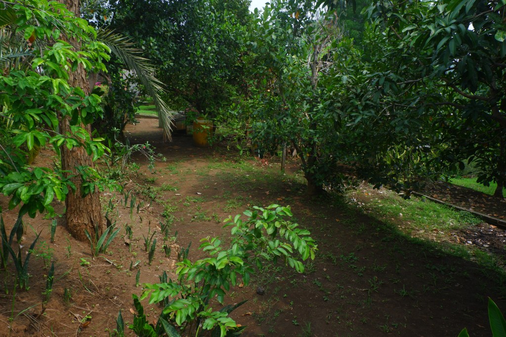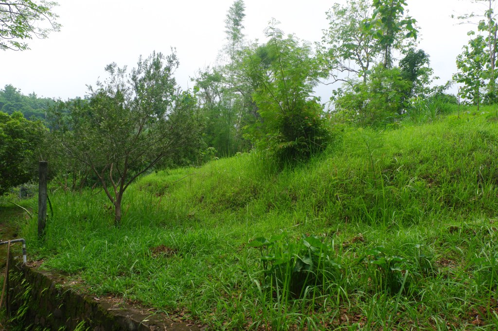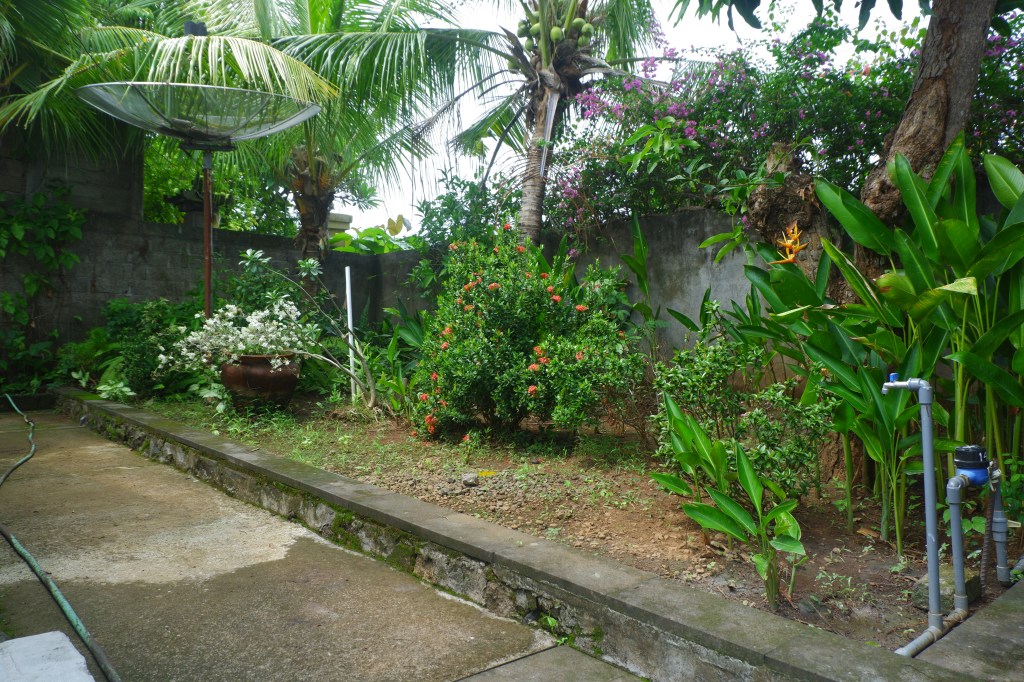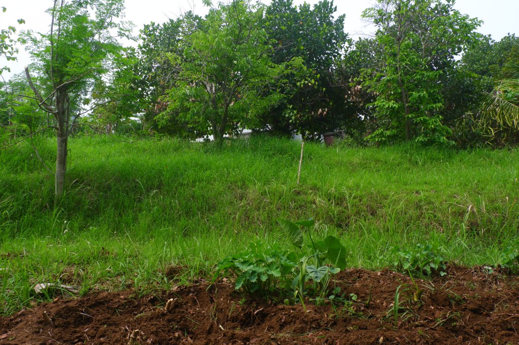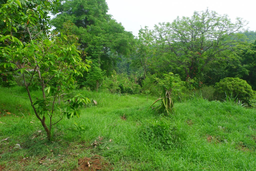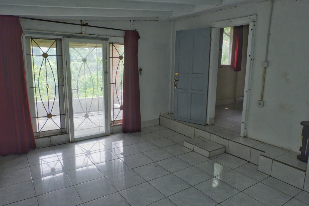 The access is good and there is a carport. The rest of the land is sloping land but you still can build on it. On the empty land are a lot of fruit trees.