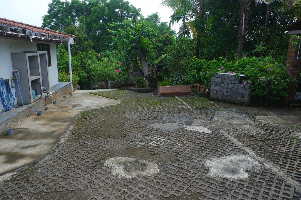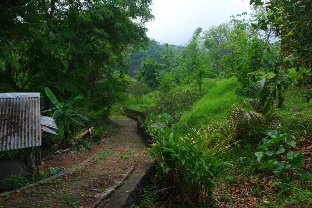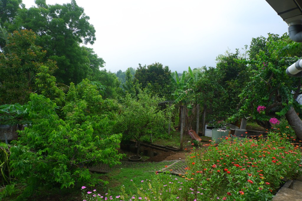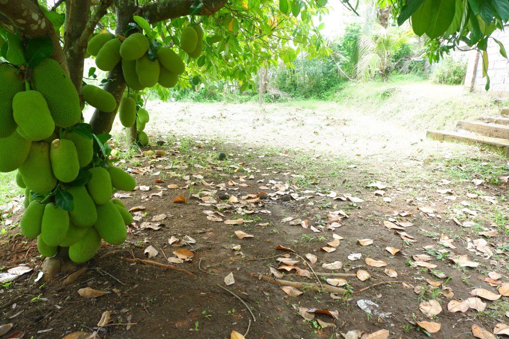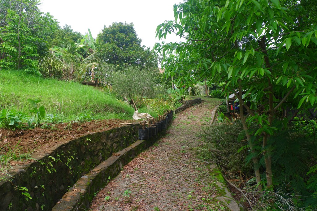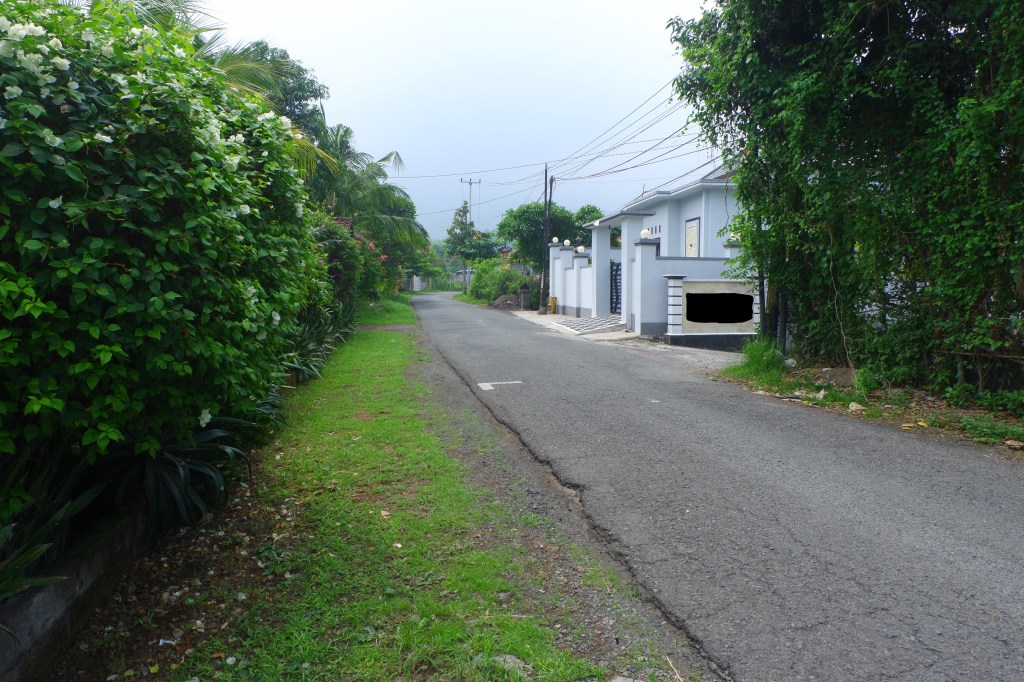 The access is good and there is a carport. The rest of the land is sloping land but you still can build on it. On the empty land are a lot of fruit trees.