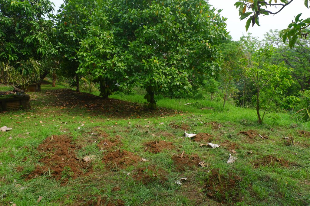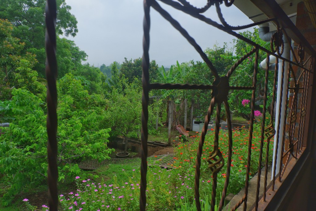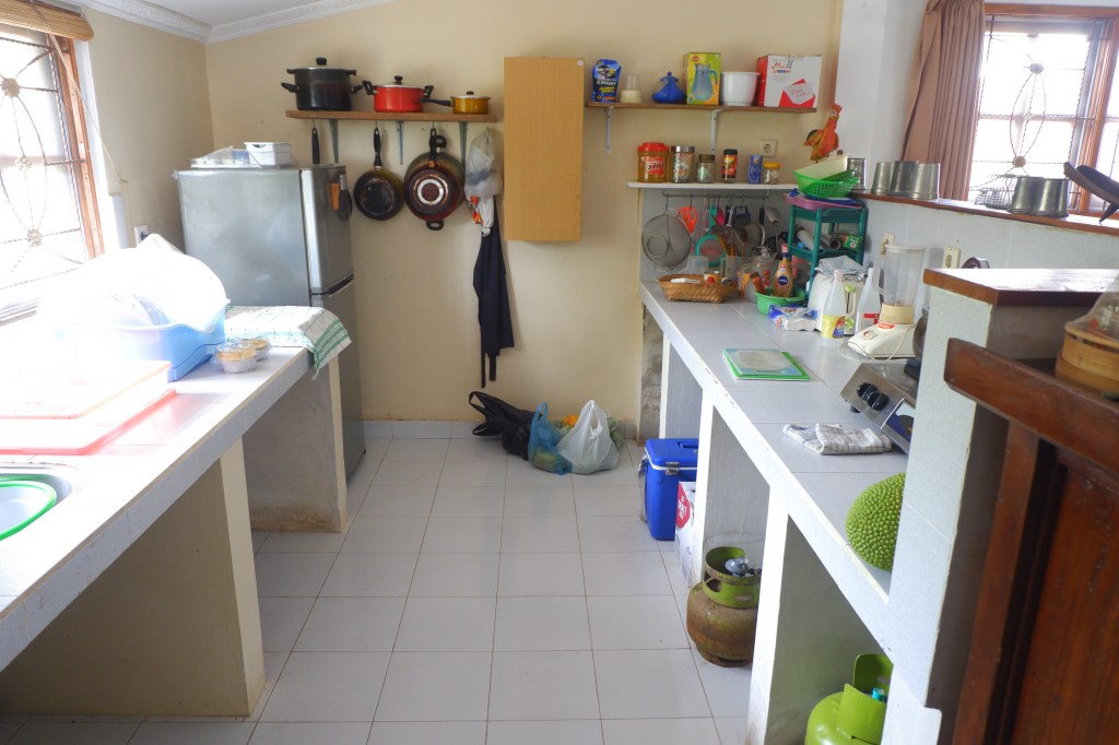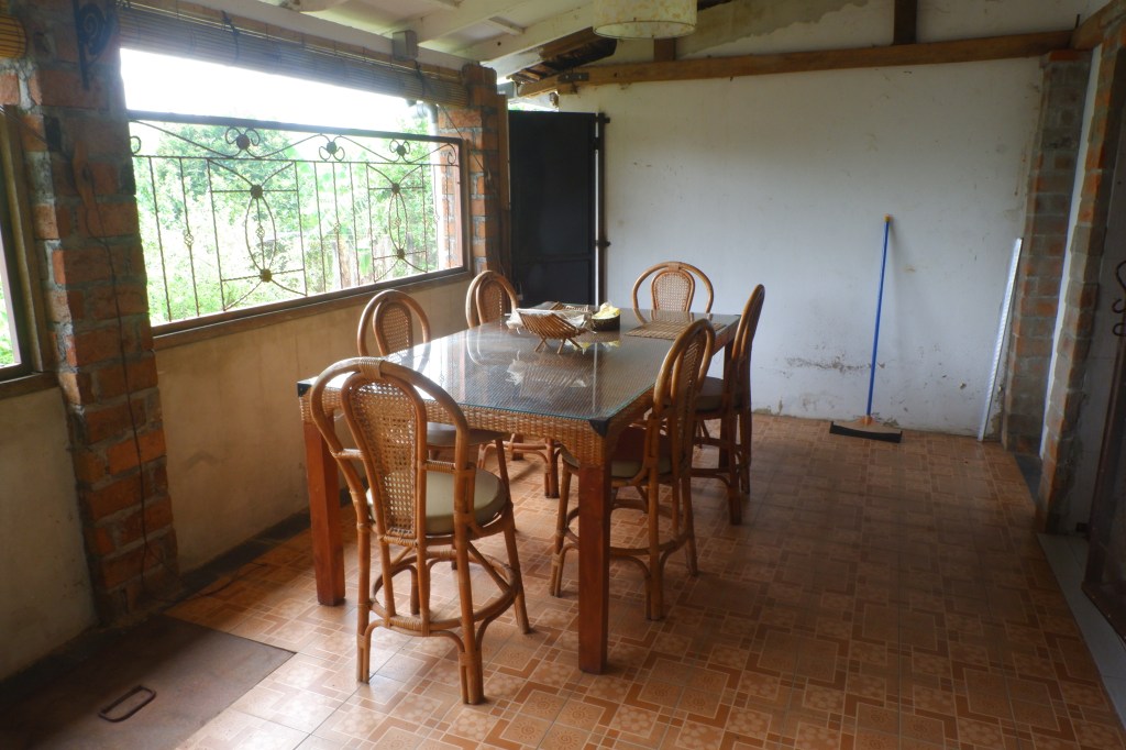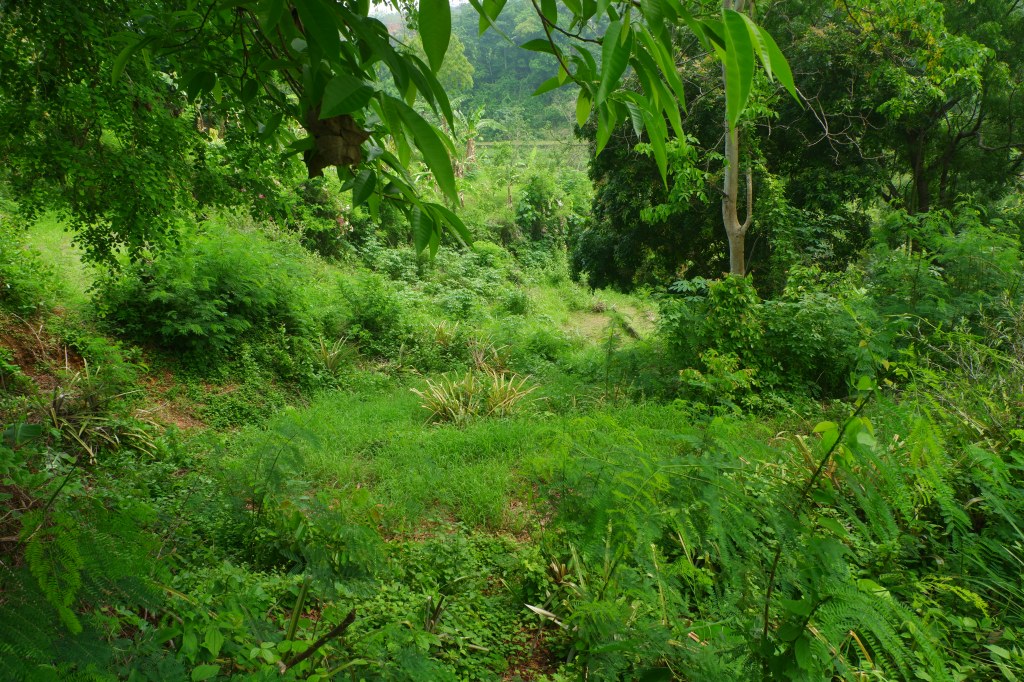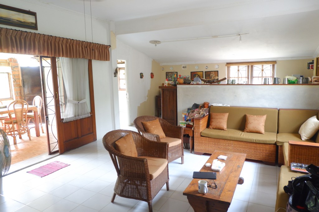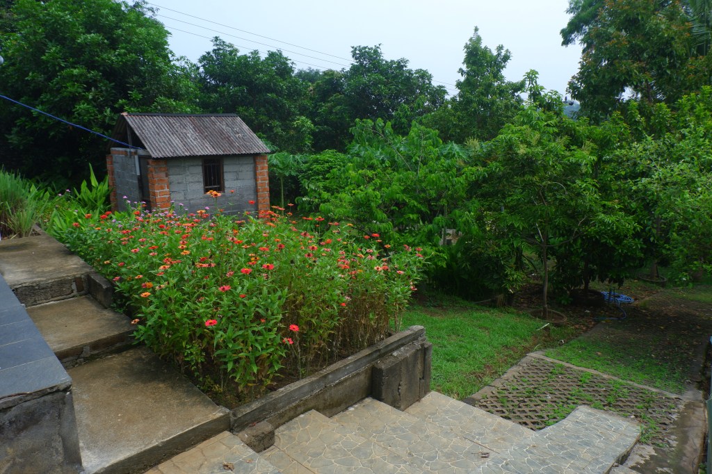 The access is good and there is a carport. The rest of the land is sloping land but you still can build on it. On the empty land are a lot of fruit trees.