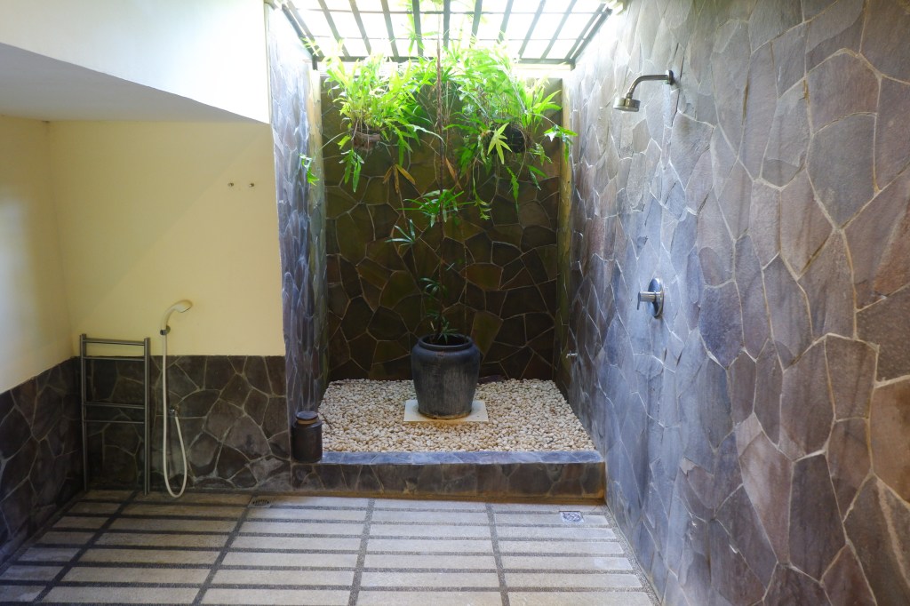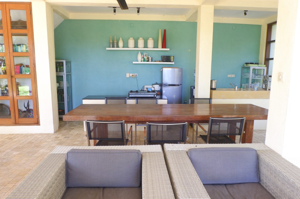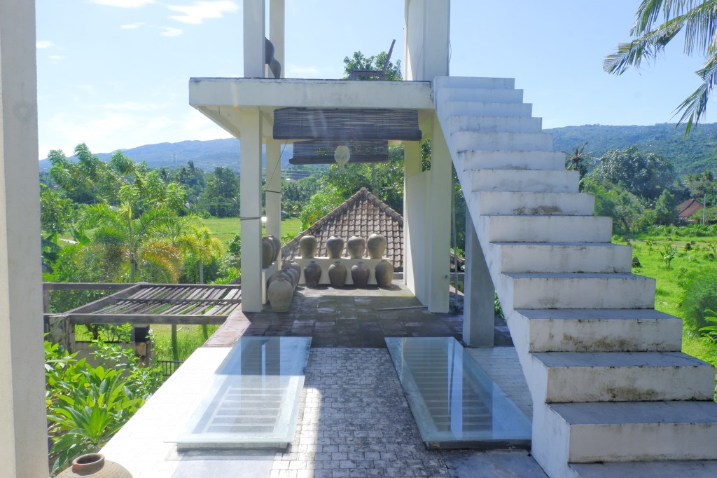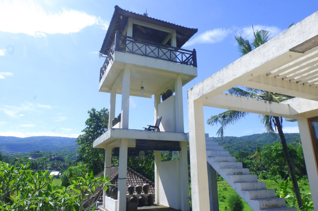 There is a stone building with kitchen, open living room and relax area downstairs, a bedroom and bathroom upstairs with 360° view to the mountains and/or ricefields. Next to it there is a stone watch tower where you can sit and enjoy the amazing view. There’s also a building that can be used as a restaurant with a huge kitchen, seating area, toilets, and storage rooms.