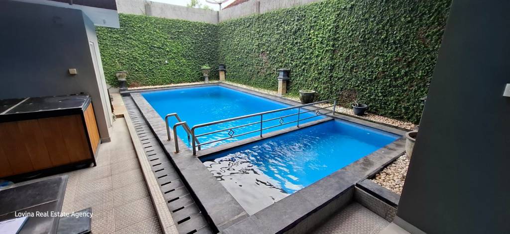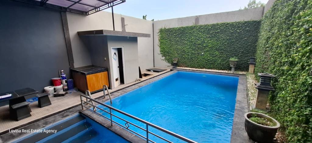In the backyard there is an under the roof terrace, a pump house with extra toilet and a big 4 by 12 meter pool. One side of the pool is a safe fenced of kid’s pool. All the window and doorframes are made from aluminium, so you don’t have to worry about insects. The Villa has CCTV.