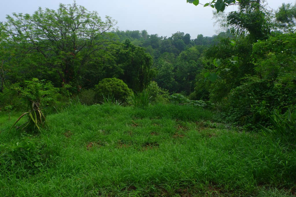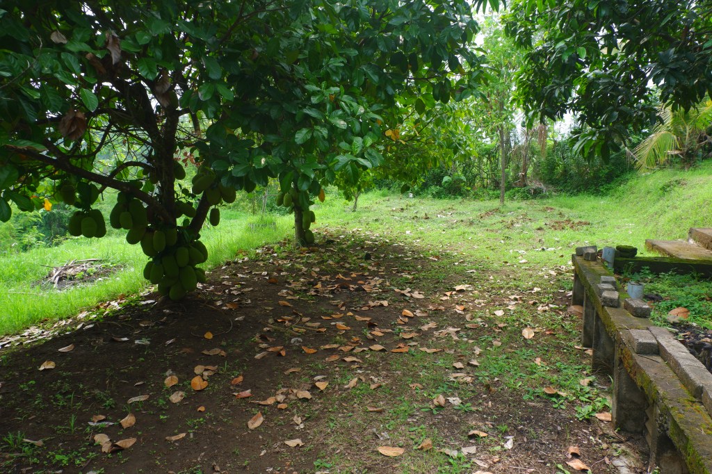 The land is sloping land but you still can build on it. On the land are a lot of fruit trees.
