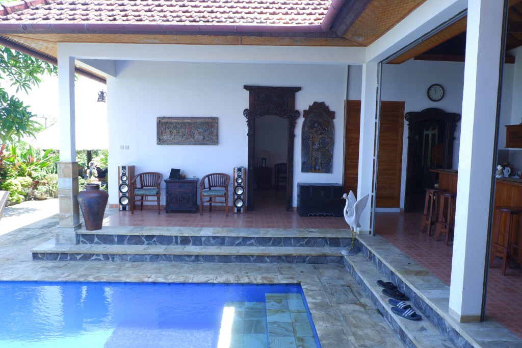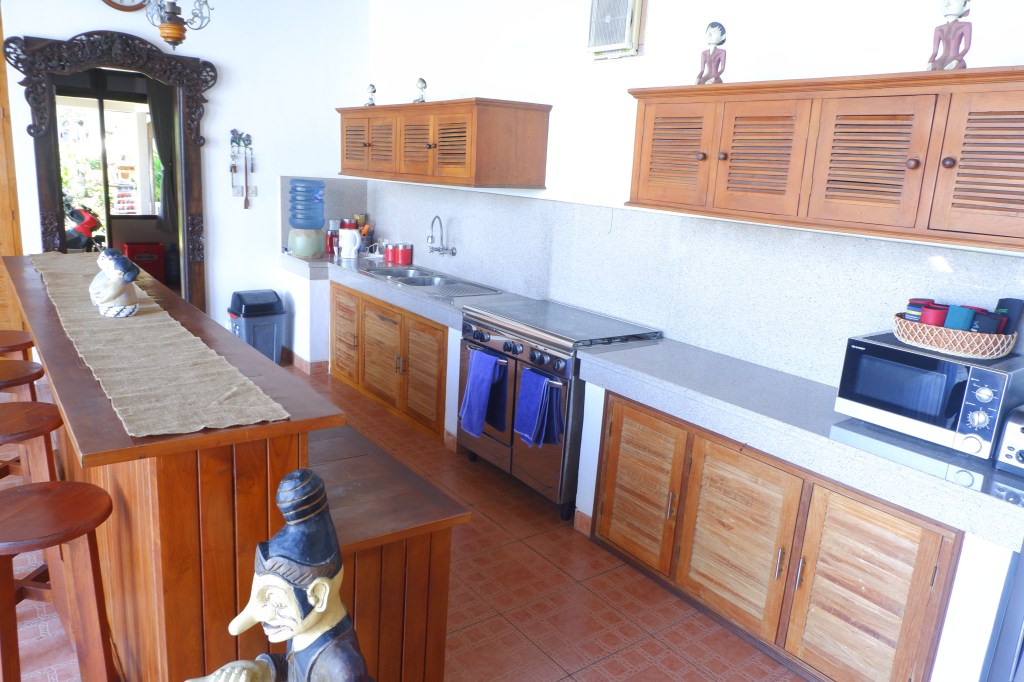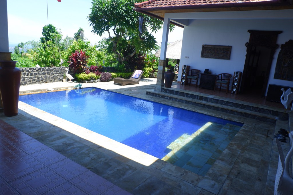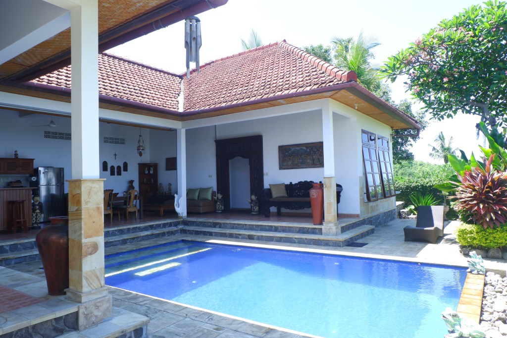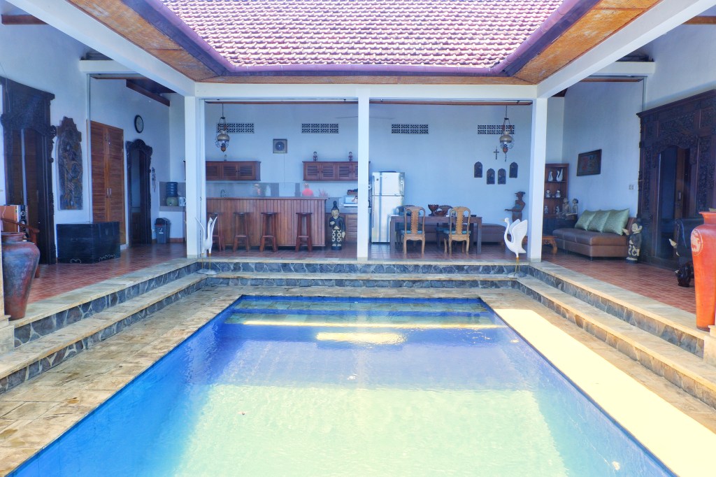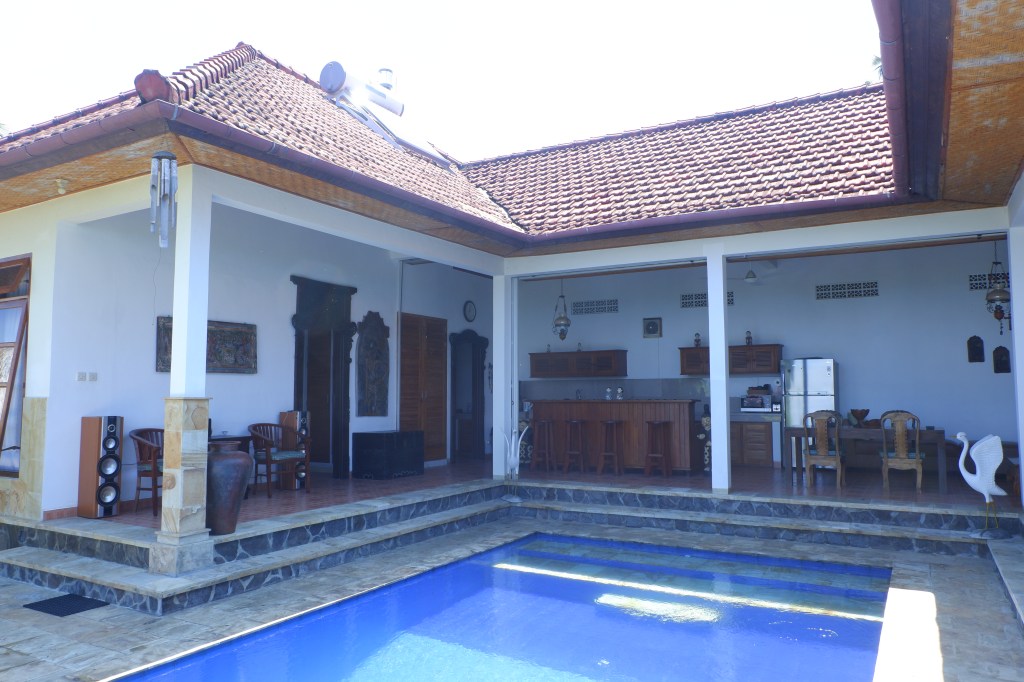 This well maintained villa is located in Kayuputih and has the most stunning ocean view you can imagine. The villa comes fully furnished and has 3 bedrooms and 2 bathrooms, a living room, kitchen, storage room, a carport garage, a gazebo, and a beautiful 8×4 meter swimming pool. It’s a nice and quiet area.