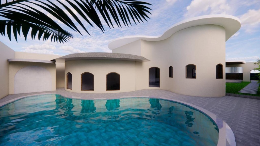 It is an architectural masterpiece with elegant curves and comes with a kidney shaped pool. If you like to own a one of a kind modern villa, then this is a must see for you