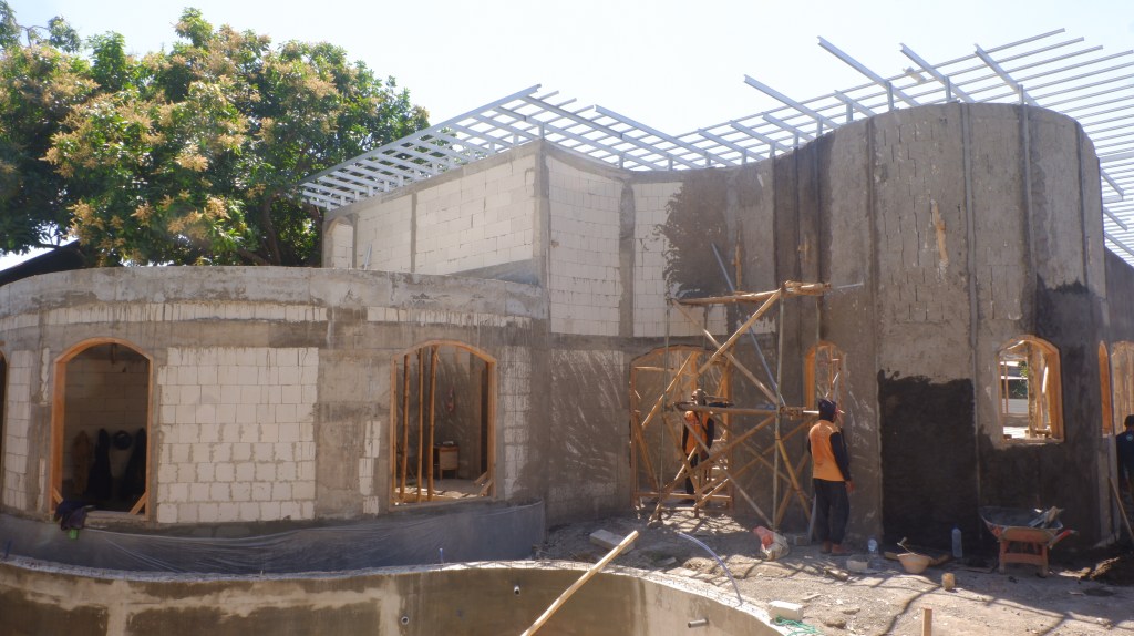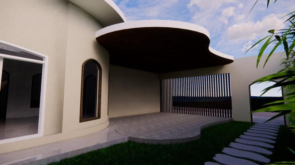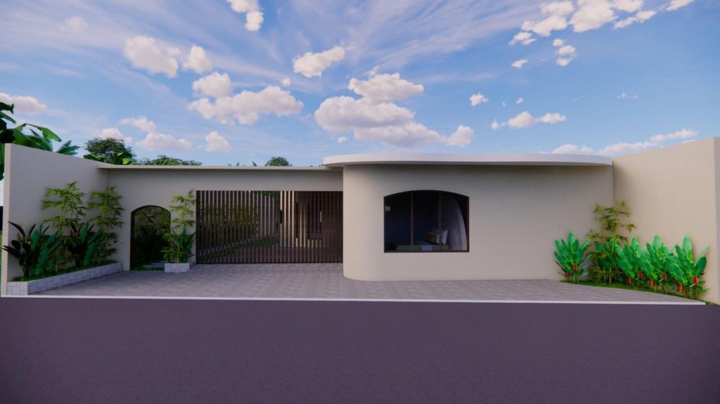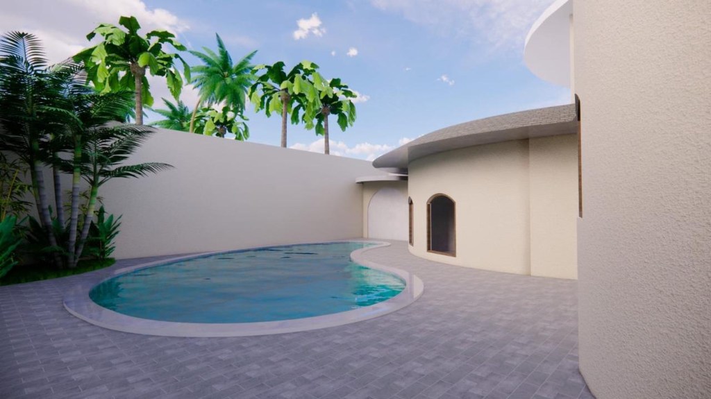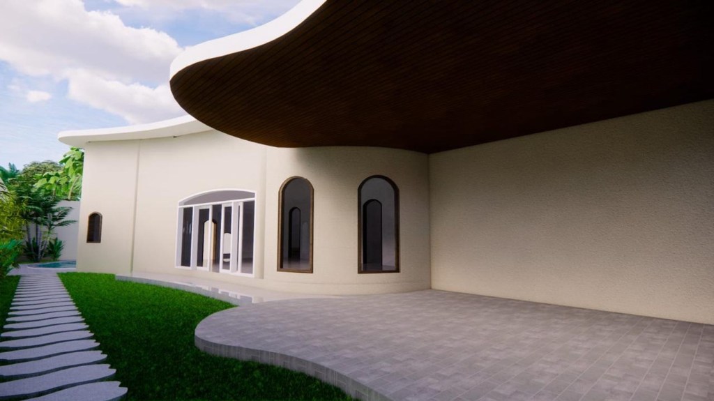 This uniquely shaped villa is located only 50 meters from the beach in Banjar. It is still under construction, but will be finished in September 2025.