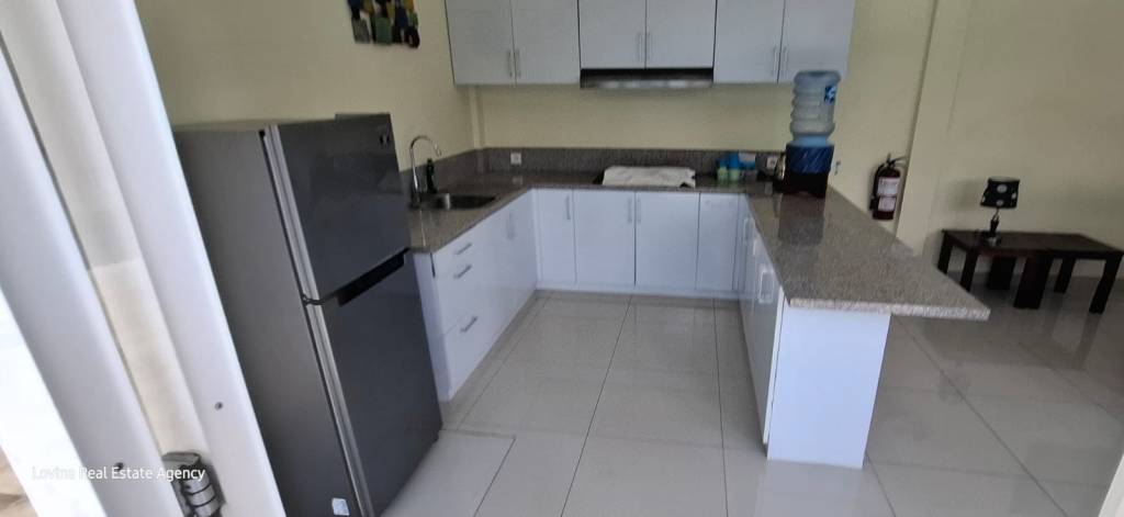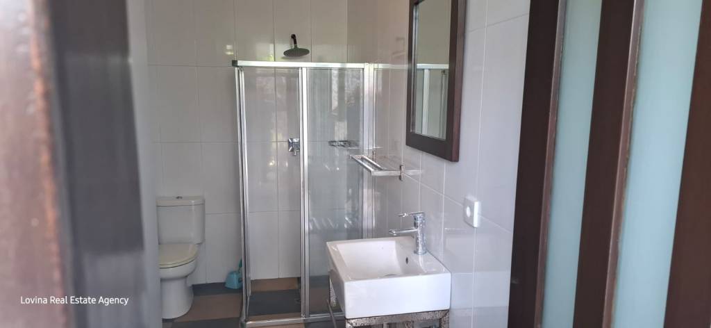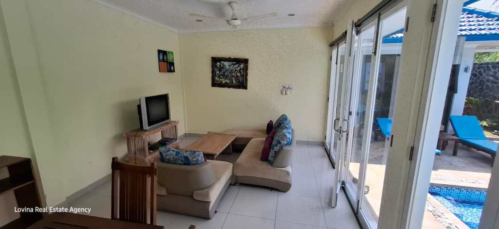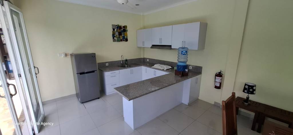 This villa is located in a quiet part of Kalibukbuk and is accessible by car. It has 3 bedrooms, which 2 of them have ensuite bathrooms and a lot of cupboard space. There is a modern open kitchen, a dining room area and a living room area who all blend smoothly into each other.