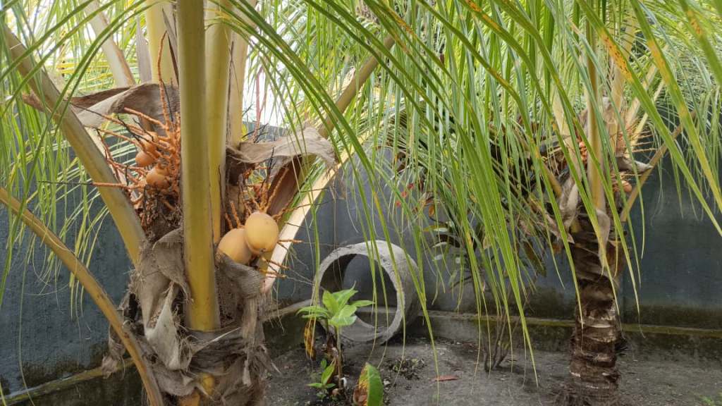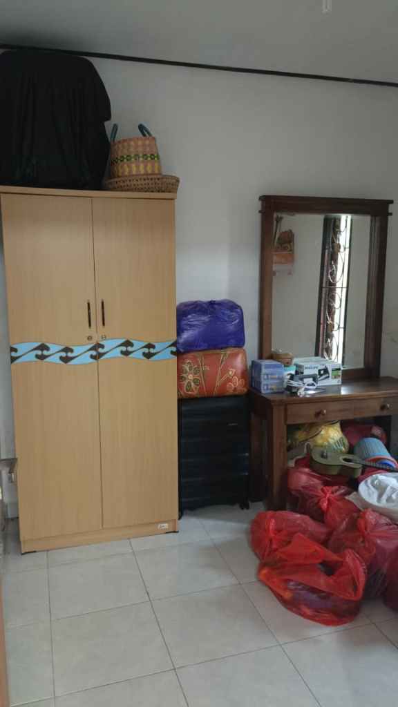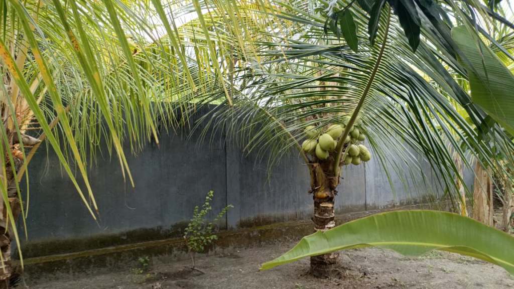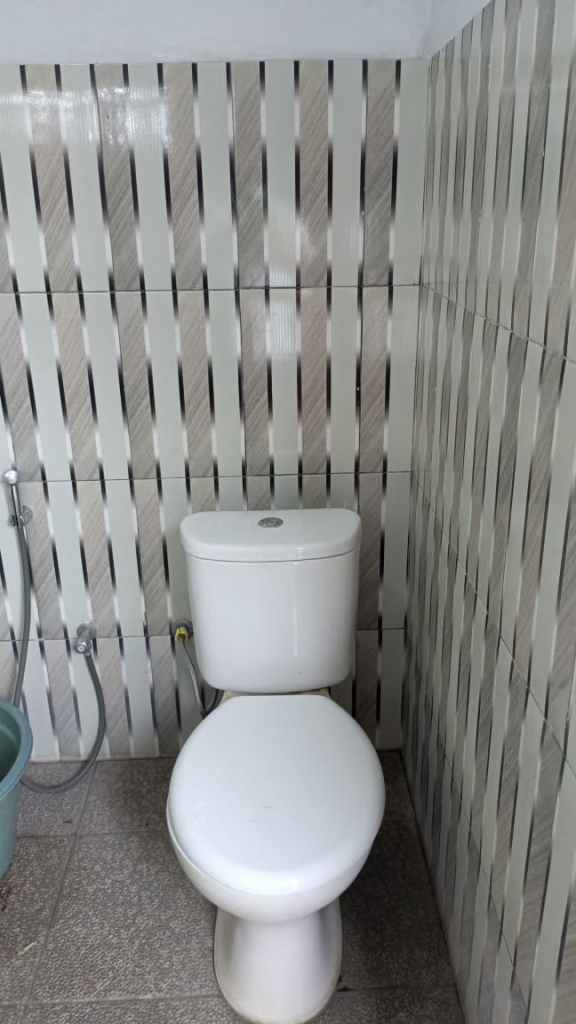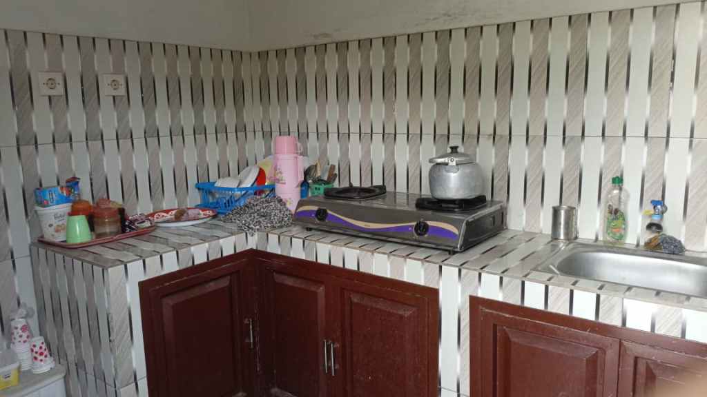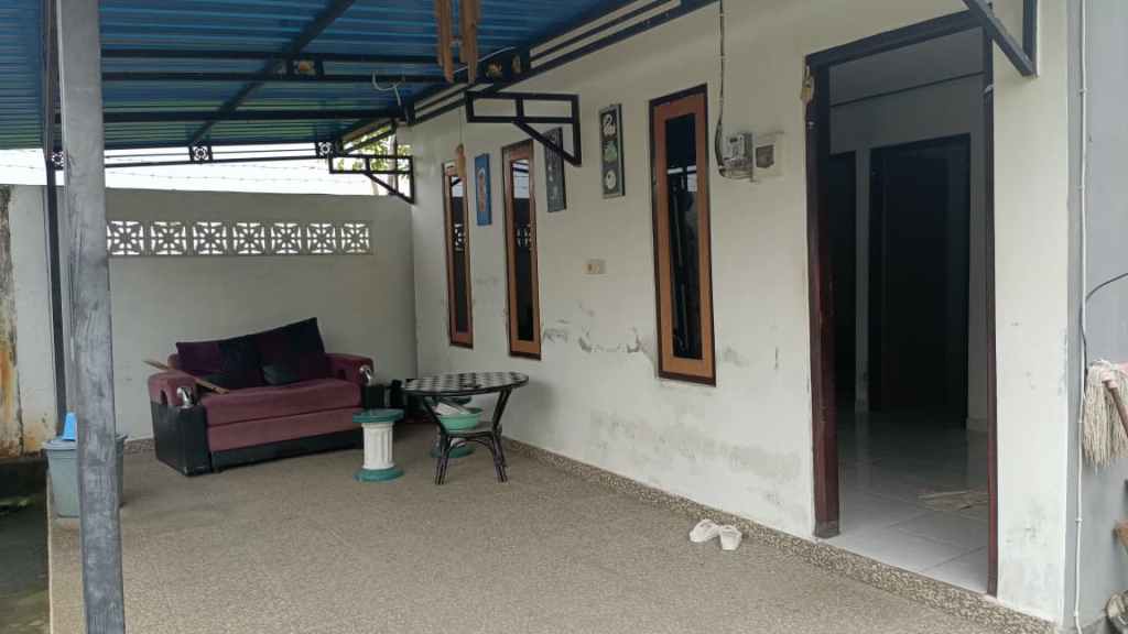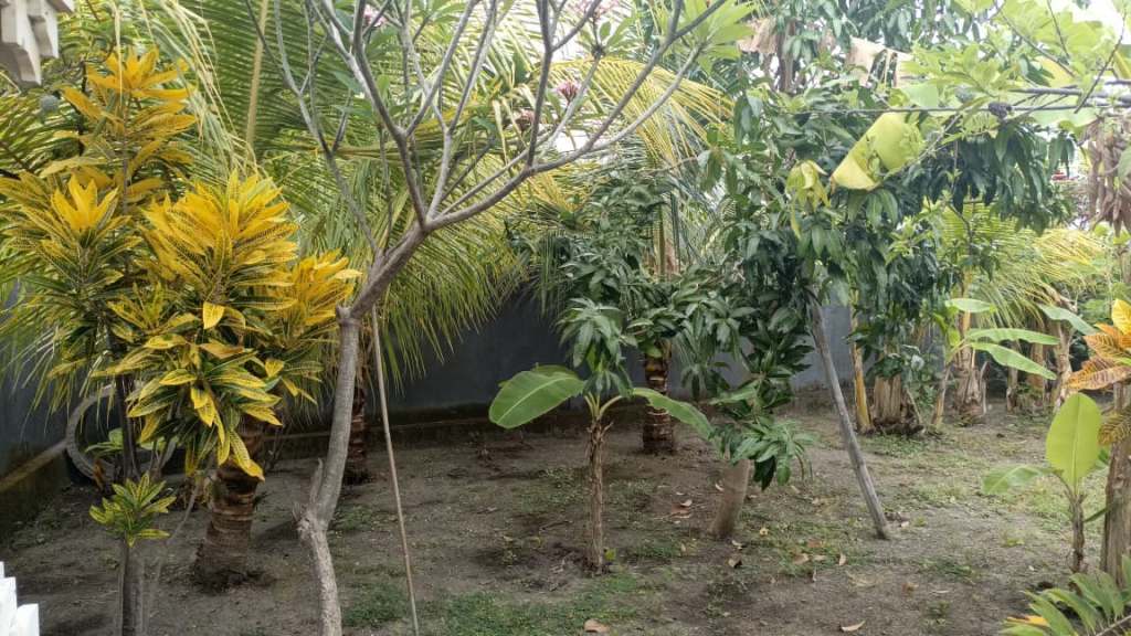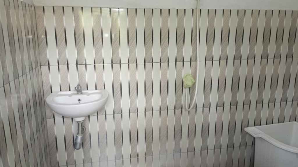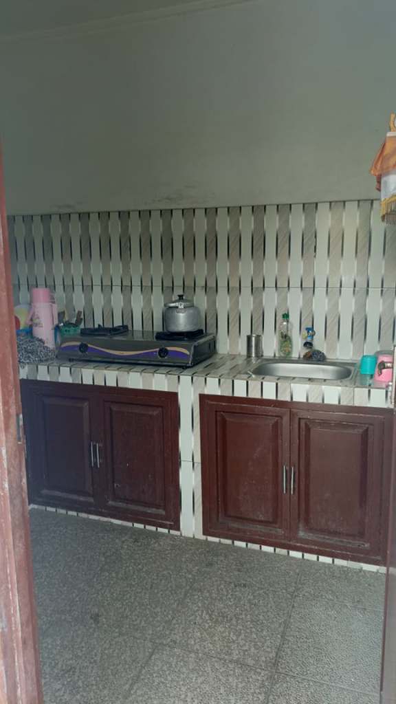 The second building has a small terrace with a bathroom and a kitchen. The garden is big with parking space. Although the access is not great but it’s a very quiet place and in the back rice fields. You don’t see it now, but if you make a 2 storey house you can, or if you take down the wall.