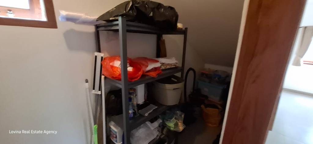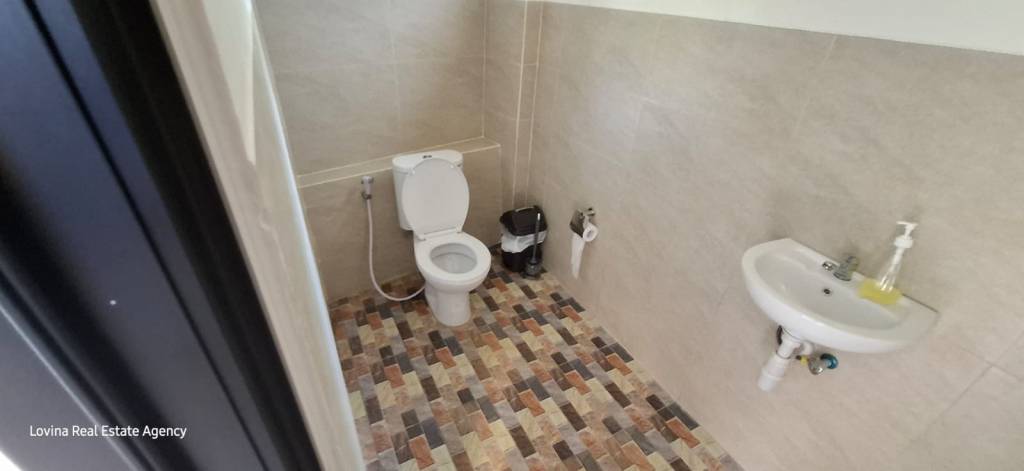 Downstairs you have a big open kitchen with bar area, a living room, a storage room under the stairs, and a big bedroom with an ensuite modern bathroom. Upstairs you have a huge under-the-roof balcony with sitting area, another dining area and a massage area. There are 3 bedrooms and 2 bathrooms on the 2nd floor. All bedrooms are accessible from the big balcony.