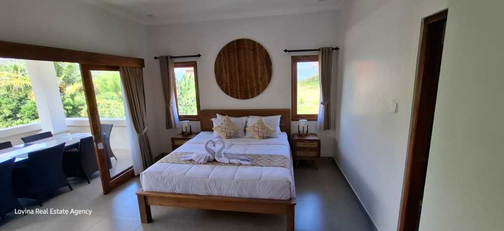 This brand new 2 story villa is located in a quiet part of Kaliasem, It has very good access and is in an area where there are more western-owned villas. It has stunning mountain view and partial ocean view.
