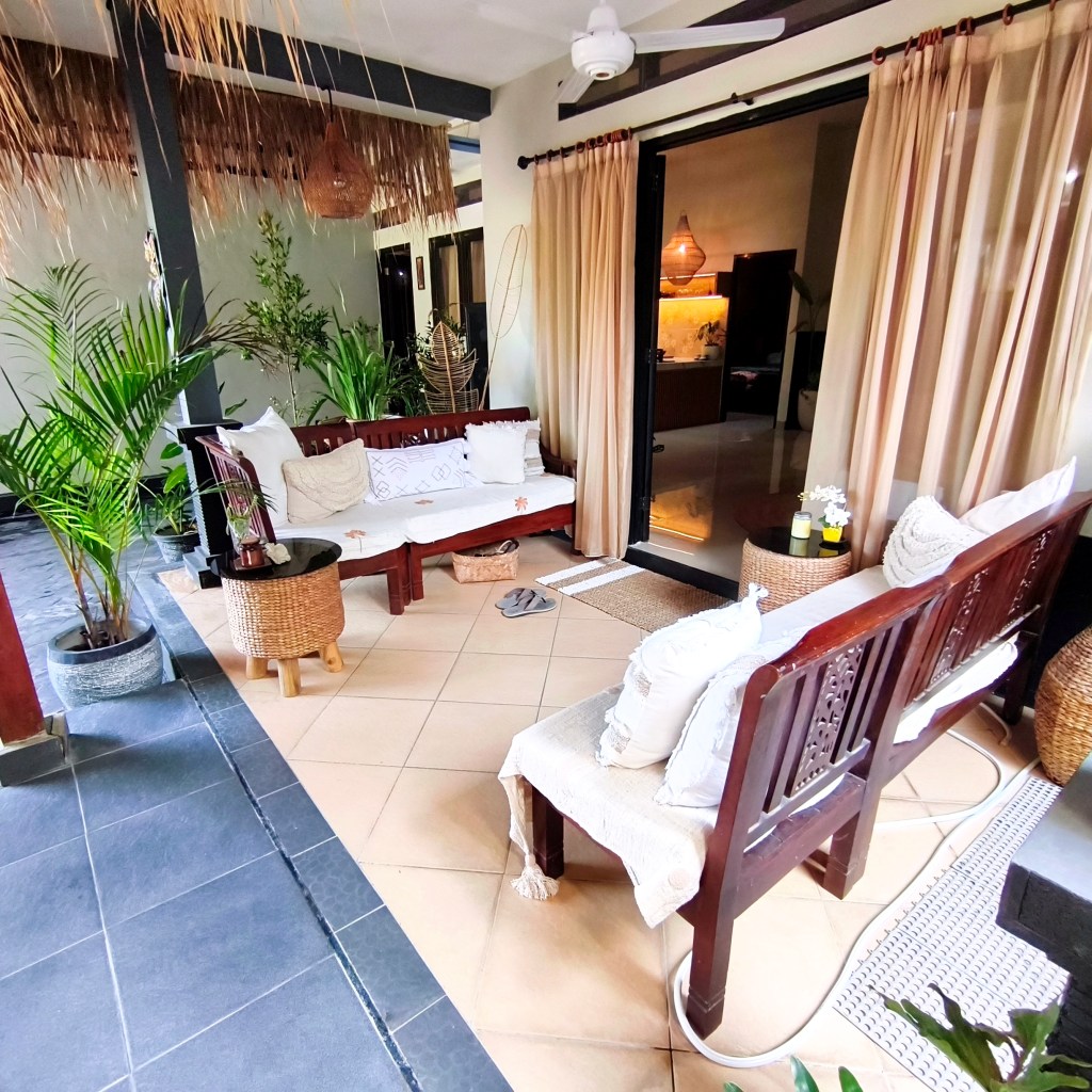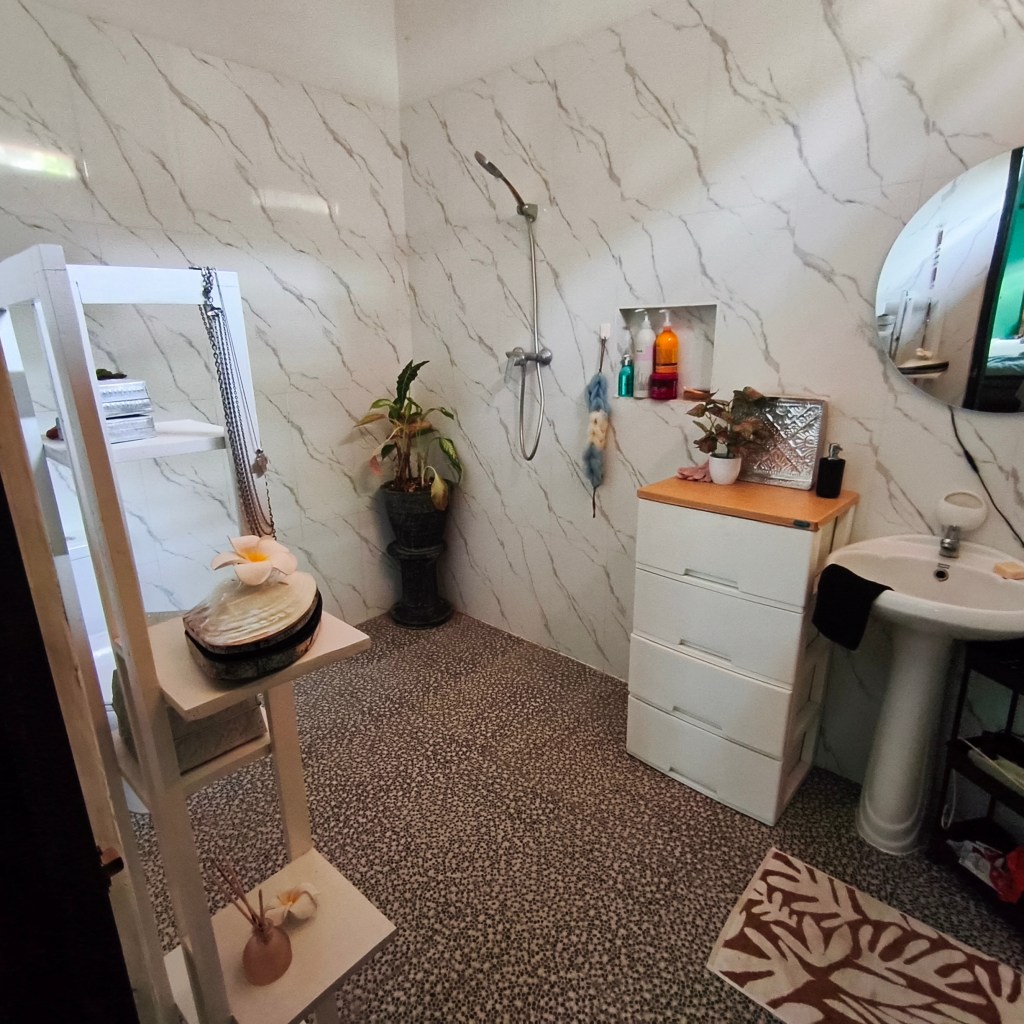 Outside is a small pool and a gazebo, it’s like an outside living area. Also a decent size carport for car and bike.