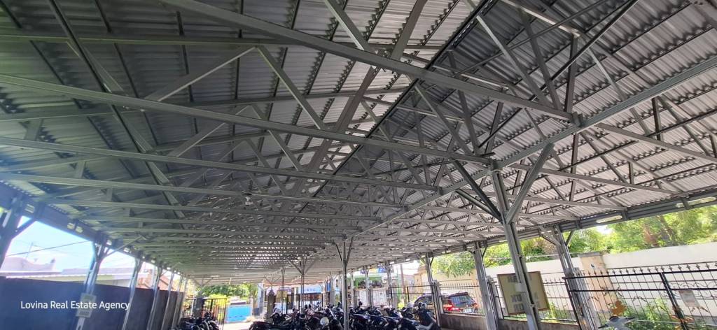 This building is located in the heart of Sambangan, so right in central. The plot is 4 are and is completely under the roof. The walls are strong (with chicken feet) and the floor is made from reinforced concrete. It has a huge open space, 2 toilets, a storage room and an office. At the moment the building is being used as a (pay for) parking garage for the nearby schools. But the building would also be very suitable for a foodcourt, a market, a garage/carwash to give you some ideas. There is PDAM water connected, and the building has CCTV cameras. Come have a look.